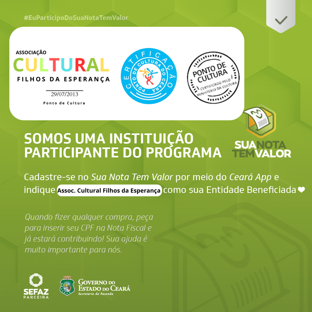 É um programa do Governo do Estado do Ceará, desenvolvido pela Secretaria da Fazenda (Sefaz-CE), que objetiva conscientizar a todos sobre a importância de pedir a nota fiscal e estimular a participação popular no controle e aplicação dos recursos públicos. A iniciativa pretende fortalecer a cidadania fiscal, a solidariedade e a inclusão social. Também busca combater a sonegação fiscal e reduzir a concorrência desleal.